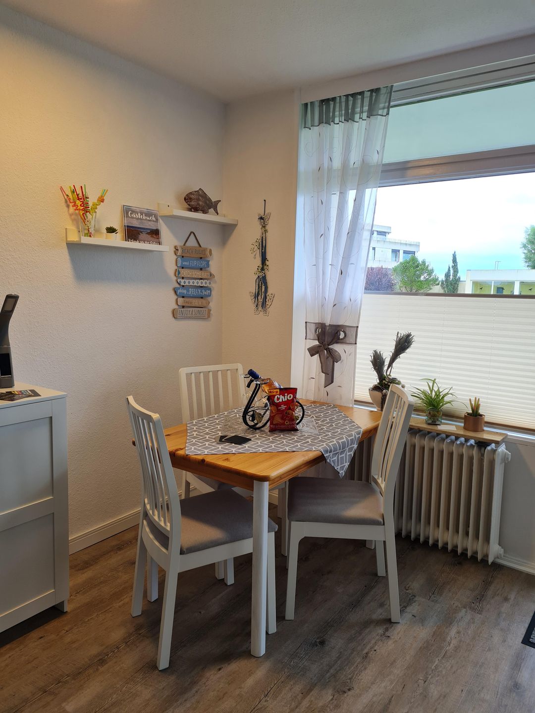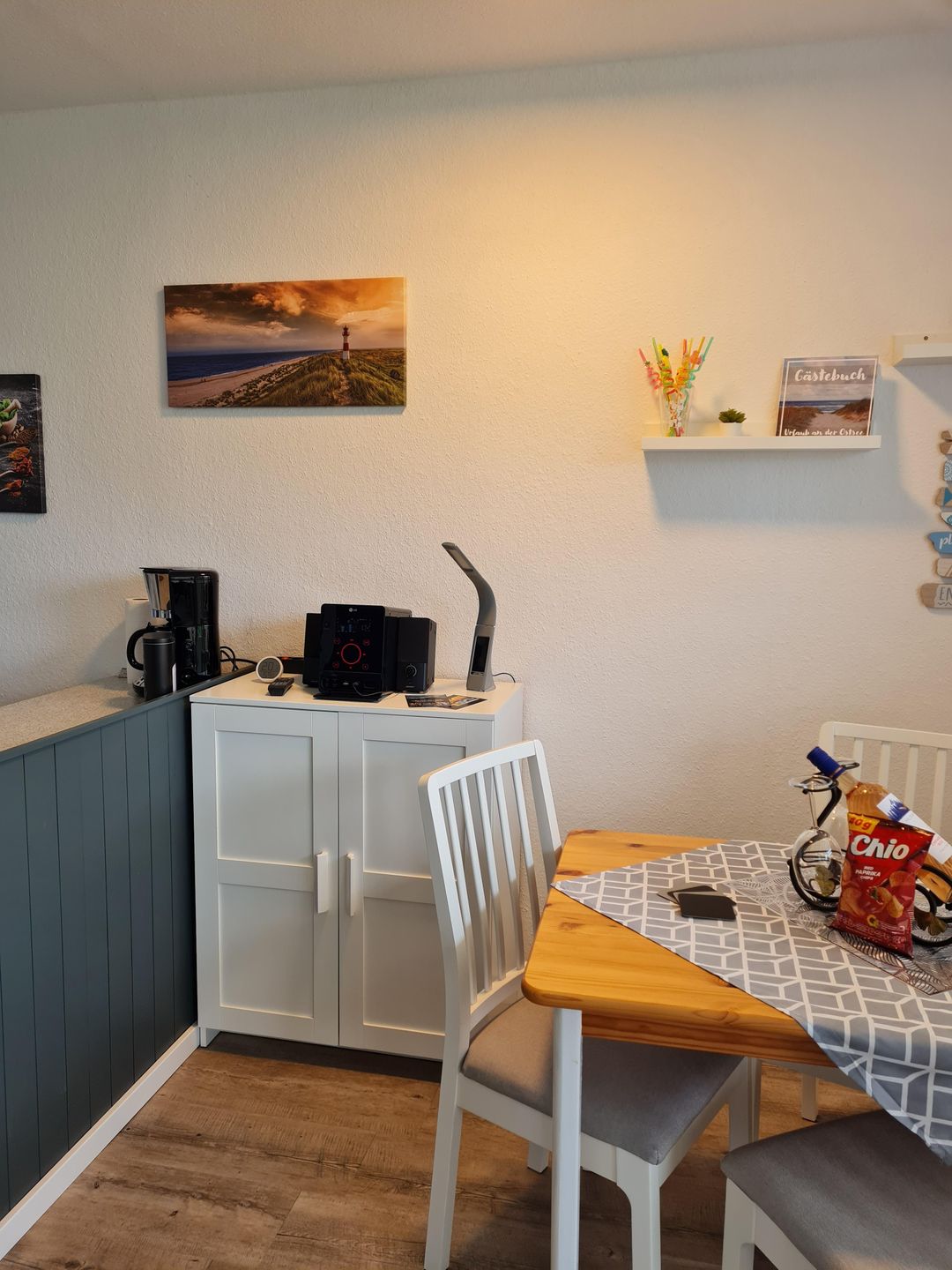 Die Ferienwohnung ist ideal für Paare, kleine Familien oder Reisende, die Wert auf Komfort in unmittelbarer Strandnähe legen. Bis zu drei Schlafmöglichkeiten stehen zur Verfügung, ein separates Schlafzimmer sorgt für erholsamen Schlaf. Im offen gestalteten Wohnbereich erwartet Sie eine gemütliche Sofaecke mit TV und Radio, die sich für entspannte Abende anbietet. Die Inneneinrichtung umfasst einen Esstisch im Essbereich, eine praktische Garderobe, Kommode sowie einen Schuhschrank und sorgt mit einer Heizung und Sichtschutz an allen Fenstern ganzjährig für ein angenehmes Wohnklima und Privatsphäre.